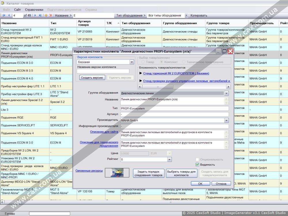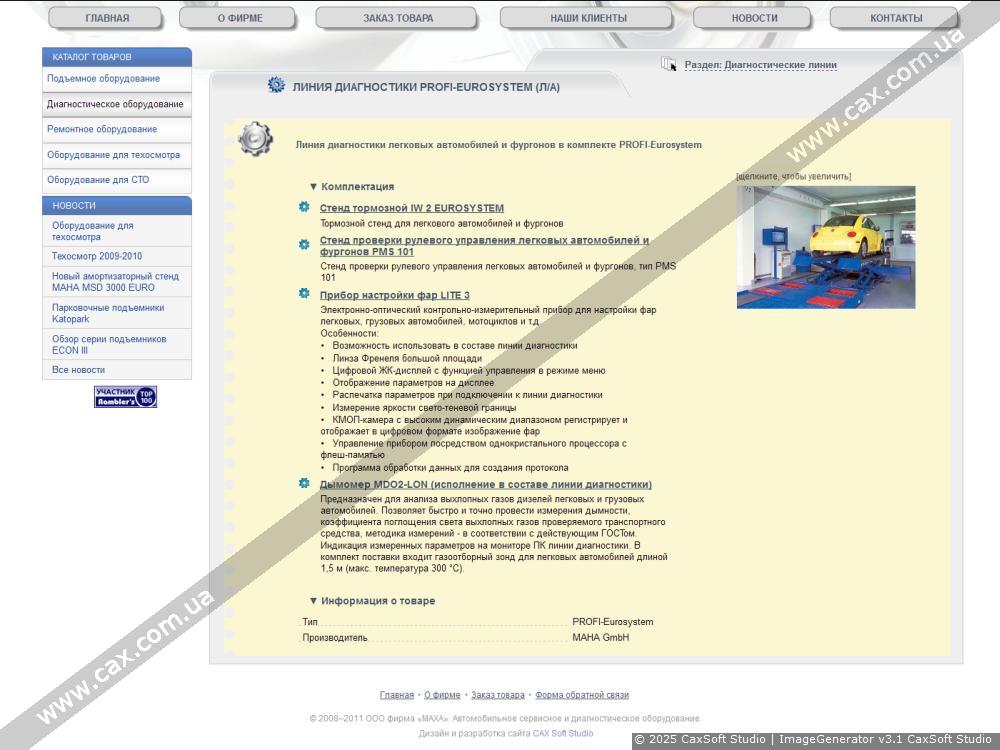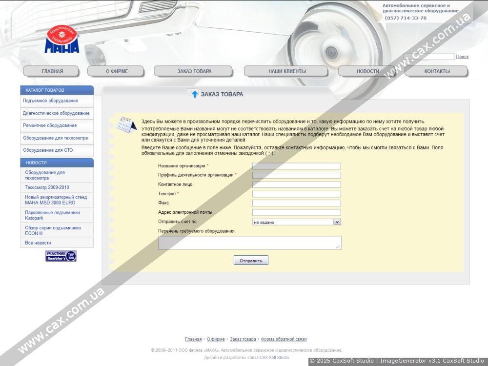 с каталогом товаров и автоматизацией приема заказов на оборудование через сайт.