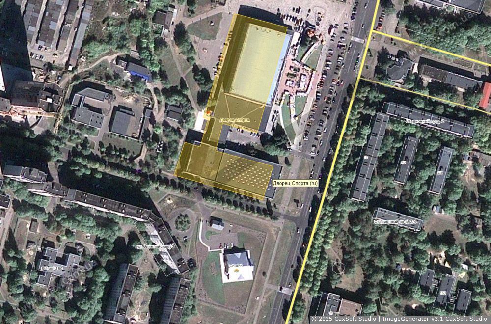 Космический снимок, использованный как основа для схемы, с наложенным слоем схем улиц,